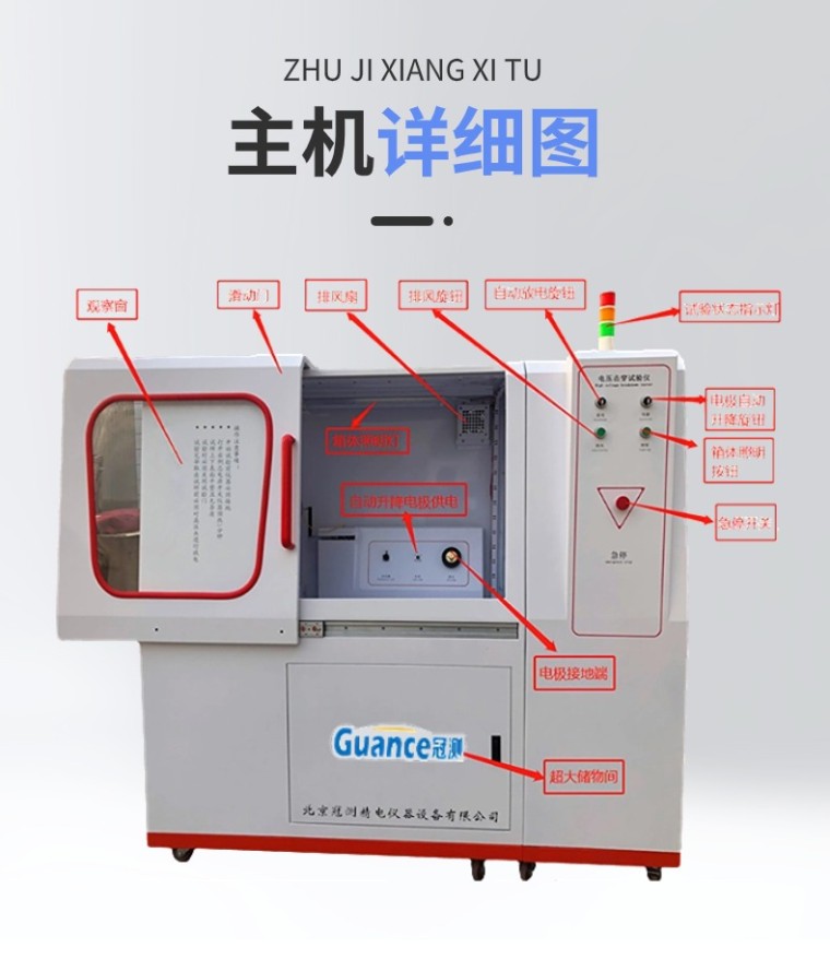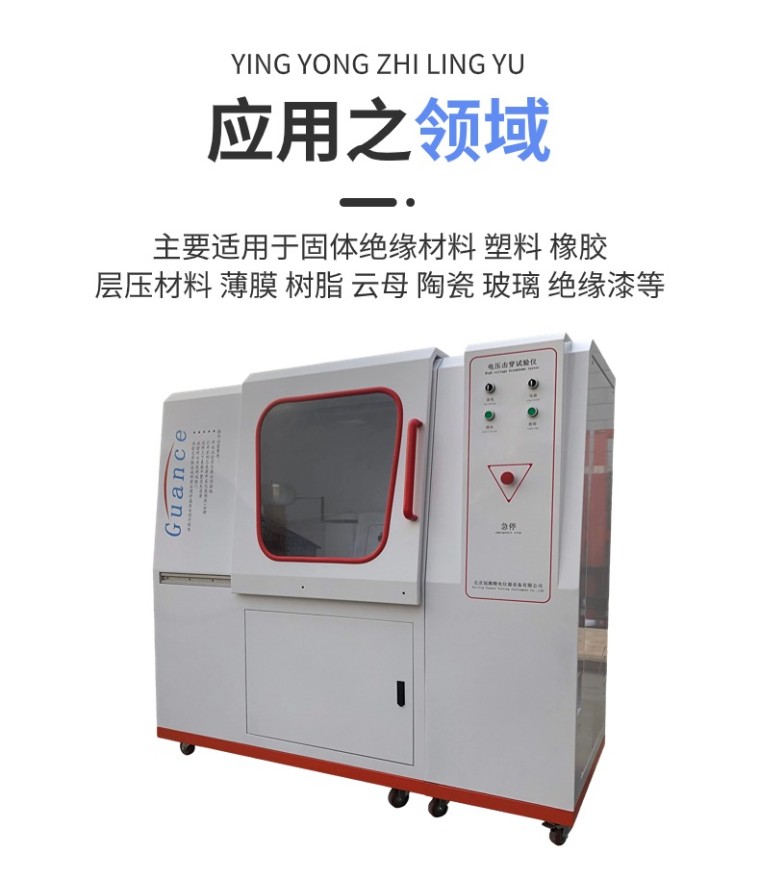 电压击穿试验仪-微机控制 GCDDJ-100Kv 一、适用范围及功能主要适用于固体绝缘材料(如:塑料、橡胶、层压材料、薄膜、树脂、云母、陶瓷、玻璃、绝缘漆等绝缘材料及绝缘件)在工频电压或直流电压下击穿强度和耐电压的测试。 二、系统组成: 控制模组:本仪器由电脑上位机软件控制,是我公司自主研发的全新第三代介电强度检测仪器,本仪器核心控制系统是通过西门子PLC控制,数据采集部分由西门子数字量集成模块完成,和电脑通讯数据采集由光电隔离线完成,有效解决试验过程中的抗干扰问题,电压采集和电流采集由高精度传感器完成。 调压模组:本模组主要应用于调压,可以对升压速率进行调节,有高压归零限位及高压升压限位。主要硬件组成有调压器、电机等部件组成。软件操作使用方便,能够实时显示升压曲线、泄露电流动态曲线,同时升压速率无级可调,可以根据自己的需要进行升压速率调节,使升压速率真正做到匀速、准确,击穿后自动判停,自动记录测试结果,显示试验数据,判断准确,并可保存,分析,打印试验数据。 高压模组:本模组主要是通过高压发生器,使电压从低压按照设定的升压速率进行升压,核心部件主要由变压器及配套的抗干扰配件组成。 试验模组:本部分主要有配套的试验电极、试验油槽、试验支架组成,可根据用户需要,在高温试验环境中进行。 二、软件功能: 01、软件平台:WINDOWS窗口操作平台,界面直观,便于操作 02、曲线显示:在实验过程中可以动态显示试验曲线 03、数据导出:可以对试验结果导入EXCEL表格 04、实验报告:可以人为设置报告名称,并对实验报告进行打印 05、试验方式:可以根据需求对直流试验和交流试验进行灵活选择 06、试验方法:可以根据需求自行选择击穿电压、耐压试验、梯度试验 07、参数设置:可以根据不同的试验方式及试验方法灵活设置所需的不同参数值 08、试样设置:可对不同标准的试样参数灵活设置 09、连续操作:连续操作试验时,可直接在软件里结束试验,进行二次试验 10、试验状态:软件里实时显示当前试验状态,如:试验门是否关闭,升压指示、归零复位指示等 三、技术要求: 01电气容量5KVA 02输出电压AC/DC-100KV 03输入电压AC-220V/50HZ 04升压速率0.1KV/S-5KV/S可手动设置 05升压方式匀速升压/梯度升压/耐压试验 06击穿判停电压判停/电流判停 07试验介质空气中试验/油浴中试验/高温试验高温为选配 08数据采集光电隔离线,抗干扰性强 09电压精度≤1.5% 10泄露电流0-100mA传感器量程 11电压传感器0-100V传感器量程 12电极规格片材电极:φ25mm-2个,φ75mm-1个可根据要求定制电极 13试验放电电动自动放电 14 电极升降手动放置/自动升降自动升降为选配 15试验油槽长宽高-300mm*150mm*200mm槽内有悬空架,方便更换试样 16试验照明内置照明灯 17试验排风内置排风扇 18试验指示主机集成试验多色塔灯,指示试验状态 19试验门气动杆试验门/滑动门滑动门为自动升降电极专用 20**防护超压保护/过流保护/短路保护/漏电保护 21工作环境室温,湿度≤65% 22主机尺寸长宽高-1500mm*850mm*1700mm 23试验空间尺寸长宽高-750mm*600mm*800mm 24试验门观察窗玻璃门尺寸-长宽550mm*600mm大视窗便于观察 25设备重量约250KG |