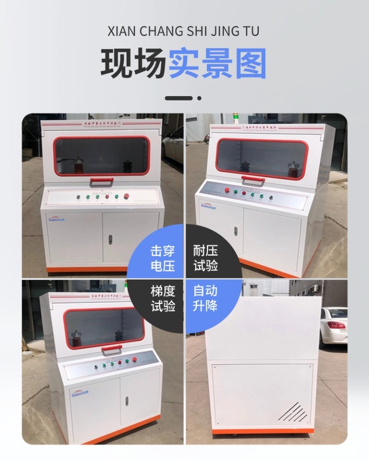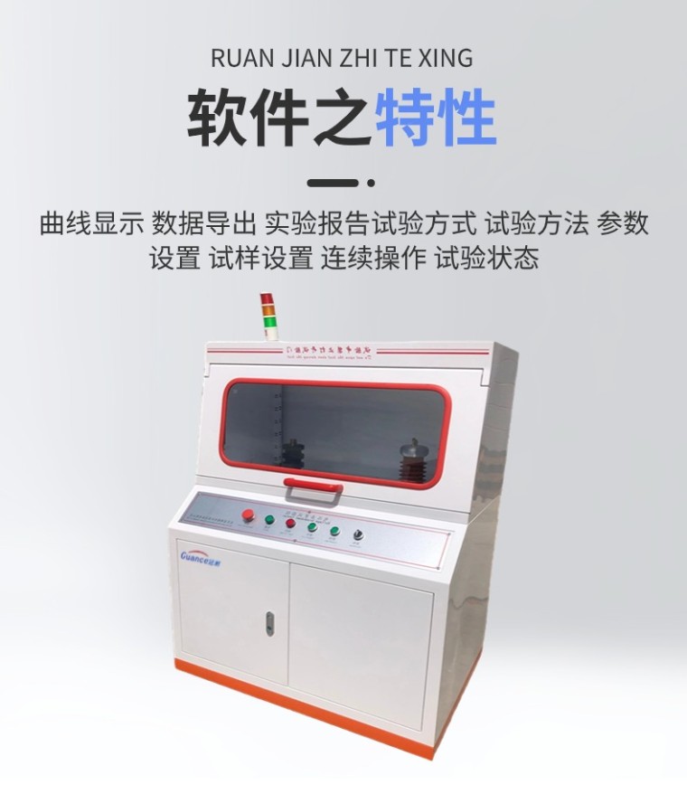 电压击穿试验仪-微机控制 GCDDJ-50Kv 满足标准:GB/T 1408-2006 绝缘材料电气强度试验方法GB/T1695-2005 硫化橡胶工频电压击穿强度和耐电压强度试验 GB/T3333 电缆纸工频电压击穿试验方法 HG/T 3330绝缘漆漆膜击穿强度测定法 GB/T 12656 电容器纸工频电压击穿试验方法 ASTM D149 固体电绝缘材料在工业电源频率下的介电击穿电压和介电强度的试验方法. … … … 一、适用范围及功能 主要适用于固体绝缘材料(如:塑料、橡胶、层压材料、薄膜、树脂、云母、陶瓷、玻璃、绝缘漆等绝缘材料及绝缘件)在工频电压或直流电压下击穿强度和耐电压的测试。 二、系统组成: 控制模组:本仪器由电脑上位机软件控制,是我公司自主研发的全新第三代介电强度检测仪器,本仪器核心控制系统是通过西门子PLC控制,数据采集部分由西门子数字量集成模块完成,和电脑通讯数据采集由光电隔离线完成,有效解决试验过程中的抗干扰问题,电压采集和电流采集由高精度传感器完成。 调压模组:本模组主要应用于调压,可以对升压速率进行调节,有高压归零限位及高压升压限位。主要硬件组成有调压器、电机等部件组成。软件操作使用方便,能够实时显示升压曲线、泄露电流动态曲线,同时升压速率无级可调,可以根据自己的需要进行升压速率调节,使升压速率真正做到匀速、准确,击穿后自动判停,自动记录测试结果,显示试验数据,判断准确,并可保存,分析,打印试验数据。 高压模组:本模组主要是通过高压发生器,使电压从低压按照设定的升压速率进行升压,核心部件主要由变压器及配套的抗干扰配件组成。 试验模组:本部分主要有配套的试验电极、试验油槽、试验支架组成,可根据用户需要,在高温试验环境中进行。 二、软件功能: 01、软件平台:WINDOWS窗口操作平台,界面直观,便于操作 02、曲线显示:在实验过程中可以动态显示试验曲线 03、数据导出:可以对试验结果导入EXCEL表格 04、实验报告:可以人为设置报告名称,并对实验报告进行打印 05、试验方式:可以根据需求对直流试验和交流试验进行灵活选择 06、试验方法:可以根据需求自行选择击穿电压、耐压试验、梯度试验 07、参数设置:可以根据不同的试验方式及试验方法灵活设置所需的不同参数值 08、试样设置:可对不同标准的试样参数灵活设置 09、连续操作:连续操作试验时,可直接在软件里结束试验,进行二次试验 10、试验状态:软件里实时显示当前试验状态,如:试验门是否关闭,升压指示、归零复位指示等 技术要求: 01 电气容量 5KVA 10KVA 20KVA 02 输出电压 AC/DC-20KV AC/DC-50KV AC/DC-100KV 03 输入电压 AC-220V/50HZ AC-380V/50HZ 04 升压速率 0.1KV/S-5KV/S 可手动设置 05 升压方式 匀速升压/梯度升压/耐压试验 06 击穿判停 电压判停/电流判停 07 试验介质 空气中试验/油浴中试验/高温试验 08 数据采集 光电隔离线,抗干扰性强 09 电压精度 ≤1.5% 10 泄露电流 0-100mA 传感器量程 11 电压传感器 0-100V 传感器量程 12 电极规格 片材电极:φ25mm-2个,φ75mm-1个 可根据要求定制电极 13 试验放电 电动自动放电 14 电极升降 手动放置/自动升降 自动升降为选配 15 试验油槽 长宽高-300mm*150mm*200mm 槽内有悬空架,方便更换试样 16 试验照明 内置照明灯 17 试验排风 内置排风扇 18 试验指示 主机集成试验多色塔灯,指示试验状态 19 试验门 气动杆试验门/滑动门 滑动门为自动升降电极专用 20 防护 超压保护/过流保护/短路保护/漏电保护 21 工作环境 室温,湿度≤65% 22 主机尺寸 长宽高-1600mm*850mm*1700mm 23 试验空间尺寸 长宽高-7500mm*600mm*800mm 24 试验门观察窗 玻璃门尺寸-长宽800mm*300mm 大视窗便于观察 25设备重量约300KG |