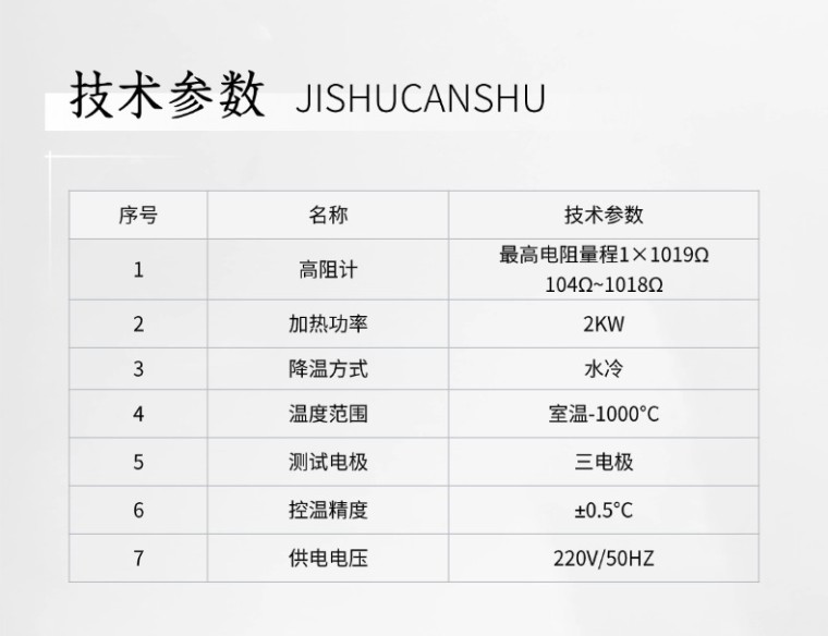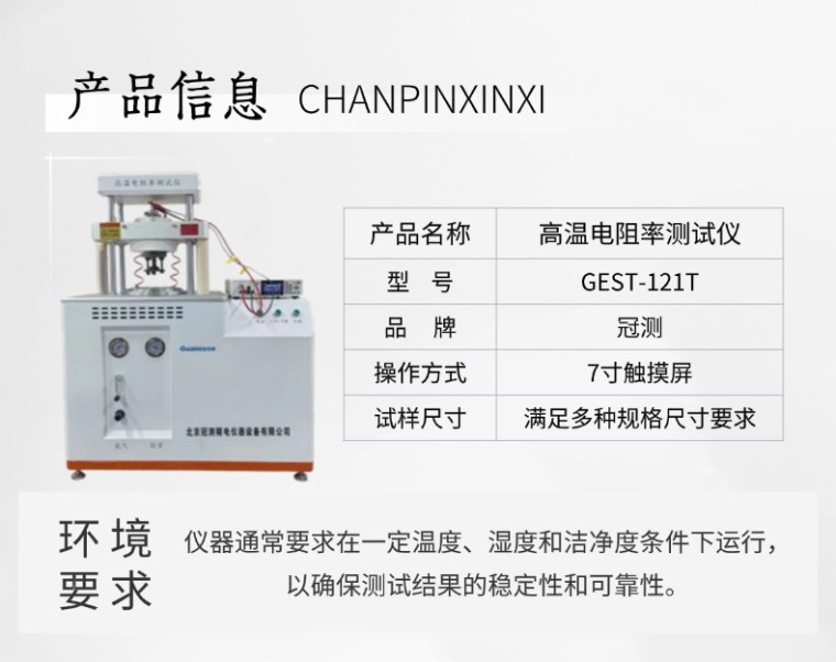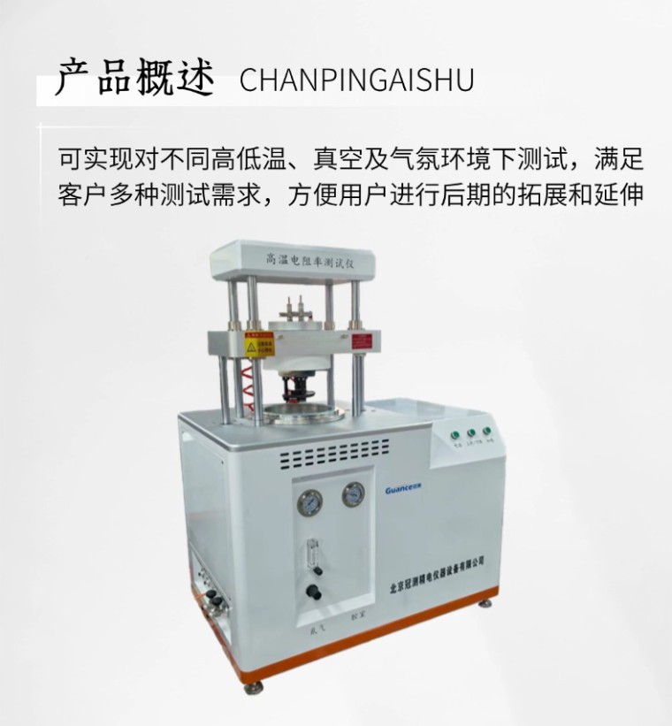 高温电阻率测试仪 GEST-121T 一、产品概述 专为材料科学研究、半导体产业、冶金工程等领域设计的测试设备。该仪器能够在多种环境下,测量材料的电阻率,为材料的性能评估、工艺优化及新材料研发提供关键数据支持。采用温控技术和高精度测量系统,确保测试结果的准确性和可靠性,是材料科学领域的研究工具。 可以适用于不同试样类型(片材/棒材/块体等)的绝缘材料电阻率测试。同时可以配套不同的试验套装,可以实现对不同温度、真空及气氛环境下测试,满足客户多种测试需求,方便用户进行后期的拓展和延伸。 本机主要用于测试绝缘固体材料在试验环境的电阻特性变化,按照升温速率升温,实时采集电阻率和电流变化,生成随温度变化的坐标曲线,试验过程自动化,能够生成电子报告,并生成曲线报告,可导出和打印。 用于测试陶瓷、氧化铝等绝缘材料从室温到试验条件的电阻特性变化。 二、工作原理 基于电流与电压的成正比关系,即欧姆定律。测试仪通过施加一定的电压于被测材料上,并测量通过材料的电流,从而计算出材料的电阻值。进一步地,结合材料的尺寸和形状,可以计算出材料的电阻率。在多种温度环境下,材料的电阻率会受到热激发、晶格振动等多种因素的影响,因此电阻率测试仪能够提供丰富的物理信息。 三、产品特点 宽温度范围测试能力:支持从室温至特定高温的宽范围测试,满足各种材料的研究需求。 高精度测量:采用四探针法或同轴探针法等先进测量技术,结合高精度数据采集系统,确保电阻率测量的准确性,误差率低至±1%。 智能温控系统:内置高精度温控模块,可实现快速升温、控温和稳定保持,确保测试环境一致。 数据管理与分析:配备大容量数据存储功能,支持数据导出至电脑进行进一步分析和管理,提供多种数据分析工具,便于用户深入研究材料性能。 保护:具备过温保护、短路保护等多重机制,确保测试过程仪器长期使用可靠性。 用户友好界面:采用大屏幕彩色触摸屏,操作直观简便,提供中文及多种国际语言界面,满足不同用户的使用习惯。 自动化测试:支持程序化测试流程,可预设测试温度、时间等参数,自动完成测试并记录数据,提高测试效率和准确性。 四、应用领域 材料科学研究:用于测量超导材料、陶瓷材料、复合材料等的电阻率,研究其电学性能与温度的关系。 半导体产业:测试半导体材料电阻率,评估掺杂浓度、晶格缺陷等参数,为芯片制造提供关键数据。 冶金工程:测量金属材料的电阻率,研究其微观结构、相变过程及热处理效果。 新能源领域:用于研究电池材料、热电材料等在多种温度下的电学性能,为新能源技术的发展提供支持。 五、操作与维护 操作注意事项: 1.在操作前,应仔细阅读仪器说明书,了解仪器的性能特点、操作方法和注意事项。 2.确保仪器电源处于关闭位置,并等待前一次测量结束后的内部放电时间。 3.在测试过程中,应注意观察仪器的运行状态和测试结果,如有异常情况应及时处理。 六、维护保养: 1.定期对仪器进行清洁和维护,保持仪器表面和内部的清洁干燥。 2.定期检查仪器的电极、夹具等部件是否损坏或磨损,如有需要及时更换。 3.长期不使用时,应将仪器存放在干燥、通风、无腐蚀性气体的环境中。 七、使用说明 1.样品准备:根据测试要求,准备合适尺寸和形状的样品,确保样品表面平整、无污染。 2.仪器设置:通过触摸屏或外部电脑软件设置测试参数,包括测试温度、时间、测量模式等。 3.样品安装:将样品放置于测试腔中,确保探针与样品接触良好,并根据需要调整样品位置。 4.启动测试:按下启动按钮,仪器将自动进行升温、控温和测量,实时显示测试数据和状态。 5.数据记录与分析:测试完成后,保存数据并导出至电脑进行进一步分析,根据需要生成测试报告。 |