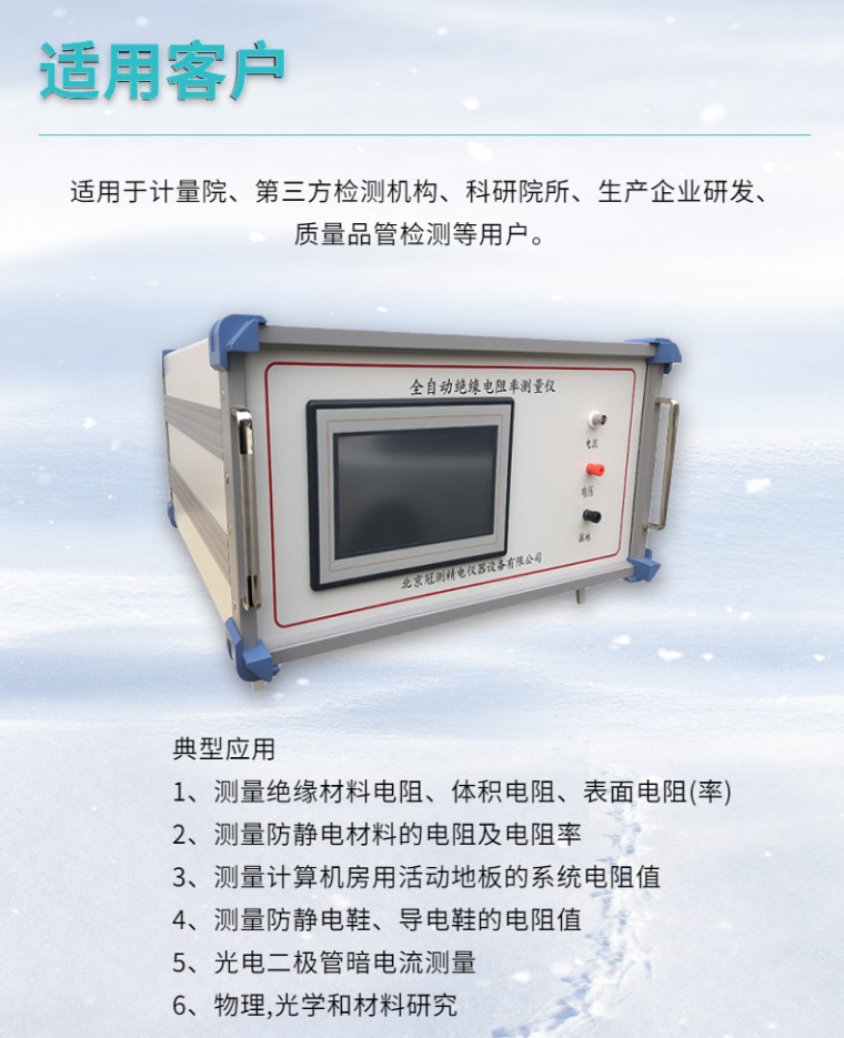 一、产品概述 本仪器主要用于测试绝缘材料的绝缘电阻、体积电阻及表面电阻值,本仪器是一台通用试验仪器,通过选配不同的测试电极,可以满足和测试所有不同类型的绝缘材料,如:粉末、片材、薄膜和液体溶液等。本仪器测试量程比较款,*高可以到1018Ω,几乎可以满足于市场上所有的绝缘材料的测试。 二、材料类型: 适用于橡胶、塑料、薄膜、块体等绝缘材料及粉体、液体、固体和膏体形状的各种绝缘材料体积和表面电阻值的测定。 三、适用客户: 适用于计量院、第三方检测机构、科研院所、生产企业研发、质量品管检测等用户。 典型应用 1、测量绝缘材料电阻、体积电阻、表面电阻(率) 2、测量防静电材料的电阻及电阻率 3、测量计算机房用活动地板的系统电阻值 4、测量防静电鞋、导电鞋的电阻值 5、光电二极管暗电流测量 6、物理,光学和材料研究 |