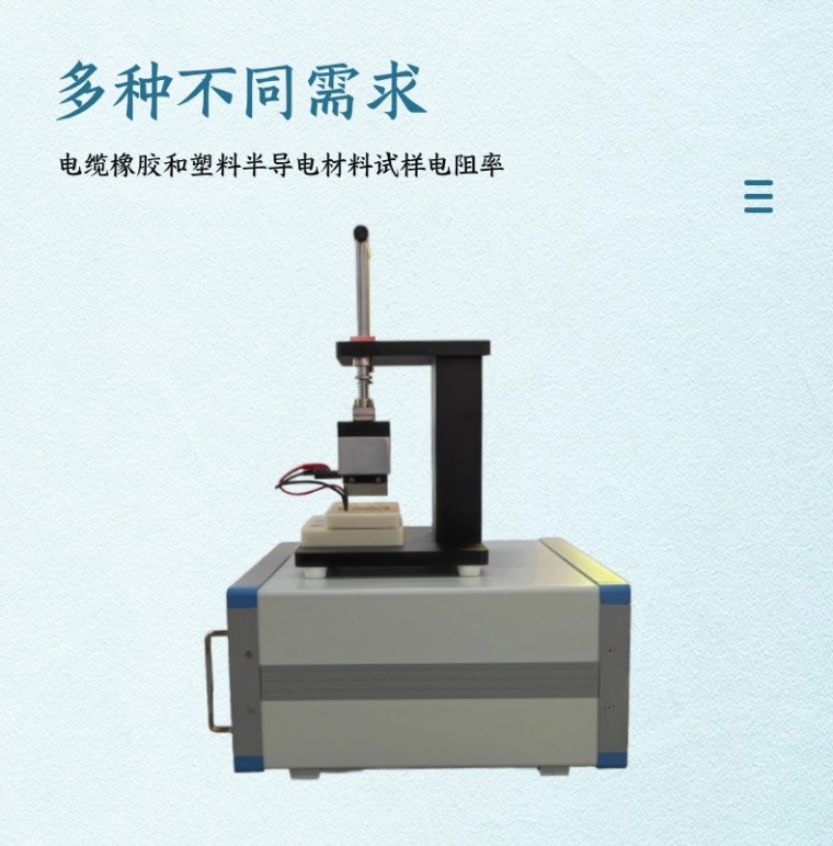 半导体电材料电阻率试验仪 满足标准: GB_T3048.3-2007电线电缆电性能试验方法_第03部分:半导电橡塑材料体积电阻率试验 GB/T 15738-2008 导电和抗静电纤维增强塑料电阻率试验方法 GB/T 15662-1995 导电、防静电塑料体积电阻率测试方法 GB/T2439-2001硫化橡胶或热塑性橡胶 导电性能和耗散性能电阻率的测定 产品概述: 半导体电材料电阻率试验仪-主要用于测 量电缆用橡胶和塑料半导电材料中间试样电阻率以及各种导电橡塑产品电阻,也可使用四端子测试夹,对金属导体材料及产品的低、中值电阻进行测量。 仪器由主机、测试架两大部分组成。主机包括高灵敏的直流数字电压表和高稳定的直流恒流源,测量结果采用LED数字直接显示,分为3个窗口:电压显示窗口,材料厚度显示窗口(用户根据实测输入),电阻率显示窗口。 仪器具有测量精度高、稳定性好、结构紧凑、使用方便等特点,符合国际和国家标准的要求。 仪器适用于电缆厂、导电橡塑材料厂、计算机厂、电子表厂、高等院校、科学研究等部门,对于导电橡塑材料及产品的电阻性能测试、工艺检测,是必需的测试设备。 仪器主要技术指标: 一、测量范围: 测量半导电电阻率时: 电阻率10-4--105Ω-cm;分辩率10-6Ω-cm 测量其他(电线电缆)电阻时: 电阻10-4--2X105Ω,分辨率1uΩ 二、 数字电压表: 1. 量程 2 mV、20 mV、200 mV、2V 2. 测量误差 2mA档±(0.5%读数+8字);20mV—2V挡±(0.5%读数+2字) 3. 显示4 1/2 位数字显示0—19999具有极性和过载自动显示,小数点、单位自动显示。 三、 恒流源: 1. 电流输出:10μA、100μA、1mA、10mA、100mA. 2. 电流误差:±(0.5%读数+2字) 四、 测量电极: 1、电极材质:测试电极-黄铜,支架-不锈钢 2、电极与试样接触宽度:5mm 3、电极与试样接触压力:0.6N 五、试样要求: 1、试样宽度:(10±0.2)mm; 长度:(70-150)mm;推荐厚度:(3-4)mm,试样任何一点的厚度余平均值的差不得大于5%。 2、试样数量:3个 六、电源要求: 1、220±10% 50HZ或60HZ 功率消耗<50W |