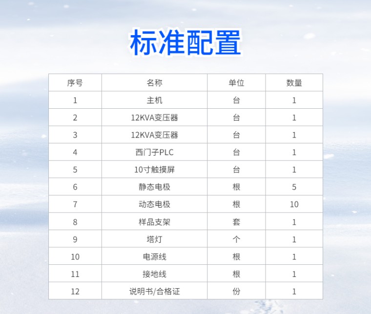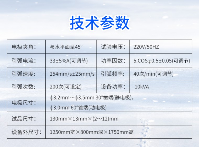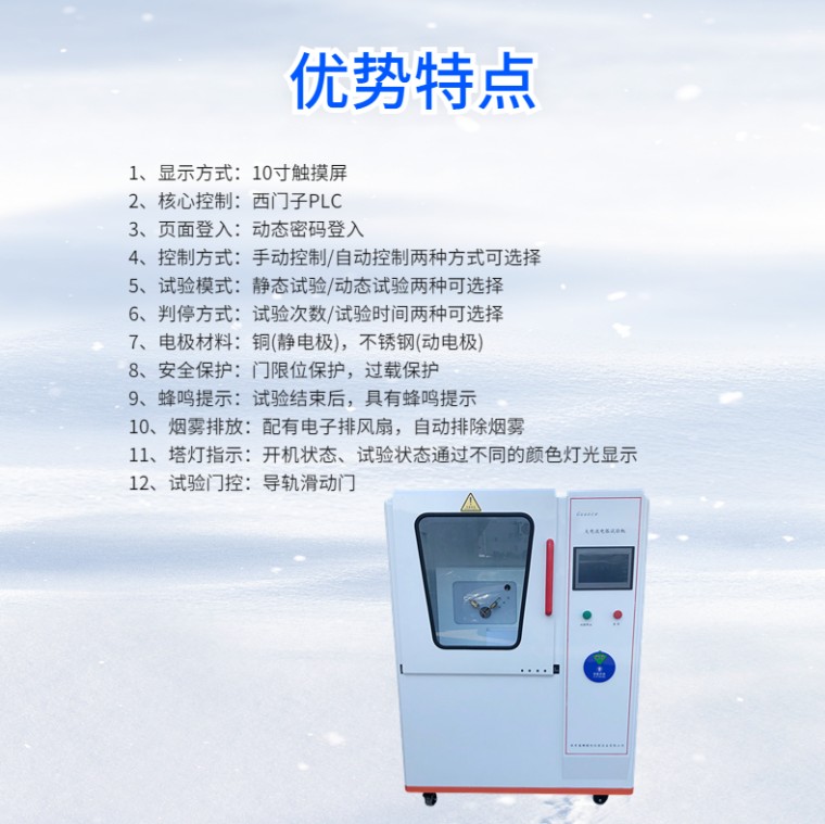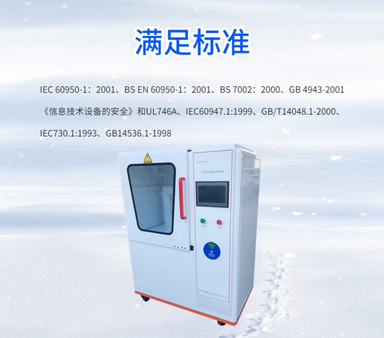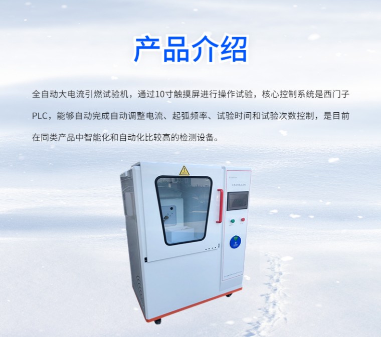 全自动大电流电弧引燃试验机 NDH-AI 设备名称:全自动大电流引燃试验机 设备型号:NDH-AI 满足标准: IEC 60950-1:2001、BS EN 60950-1:2001、BS 7002:2000、GB 4943-2001《信息技术设备的**》和UL746A、IEC60947.1:1999、GB/T14048.1-2000、IEC730.1:1993、GB14536.1-1998 应用领域: 在电工电子设备内部容易使火焰蔓延的绝缘材料或其他固体可燃材料的零部件,可能会因靠近或接触电弧而起燃,引发电气火灾,危及设备可靠运行和人身**。 适用于照明设备、低压电器、家用电器、机床电器、电机、电动工具、电子仪器、电工仪表、信息技术设备、电气事务设备、电气连接件和辅件等电工电子产品及其元件部件的研究、生产和质检部门,也适用于绝缘材料、工程塑料或其他固体可燃材料行业。 设备介绍: 全自动大电流引燃试验机,通过10寸触摸屏进行操作试验,核心控制系统是西门子PLC, 能够自动完成自动调整电流、起弧频率、试验时间和试验次数控制,是目前在同类产品中智能化和自动化比较高的检测设备。 试验原理及操作流程: 触摸屏上设定试验电流、试验次数,将功率因数调整为0.5后,点开始试验,自动按照设定的要求进行试验,试验结束后,自动归到零位,并有蜂鸣报警提示。 为了方便排出试验时导致的燃烧烟雾,仪器带有电子风扇进行排烟,并配有照明灯,方便操作 结果评定: 在试品表面反复引弧至200次,以试品在规定引弧次数下是否引燃来对该试品耐大电流电弧引燃性能进行评定。 优势特点:: 1.显示方式:10寸触摸屏 2.核心控制:西门子PLC 3.页面登入:动态密码登入 4.控制方式:手动控制/自动控制两种方式可选择 5.试验模式:静态试验/动态试验两种可选择 6.判停方式:试验次数/试验时间两种可选择 7.电极材料:铜(静电极),不锈钢(动电极) 8.**保护:门限位保护,过载保护 9.蜂鸣提示:试验结束后,具有蜂鸣提示 10.烟雾排放:配有电子排风扇,自动排除烟雾 11.塔灯指示:开机状态、试验状态通过不同的颜色灯光显示 12.试验门控:导轨滑动门 技术参数: 1.电极尺寸: ф3.2mm~ф3.5mm 30°凿端(静电极), ф3.0mm 60°锥端(动电极) 2.电极夹角:与水平面呈45° 3.试验电压:220V/50HZ 4.引弧电流:33±5%A(可调节) 5.功率因数:COSφ0.5±0.05(可调节) 6.引弧速度:254mm/s±25mm/s 7.引弧频率:40次/min(可调节) 8.引弧次数:200次(可设定) 9.试品尺寸:130mm×13mm×(2~12)mm 10.设备外尺寸:1250mm宽×800mm深×1750mm高 11.设备功率:10kVA |