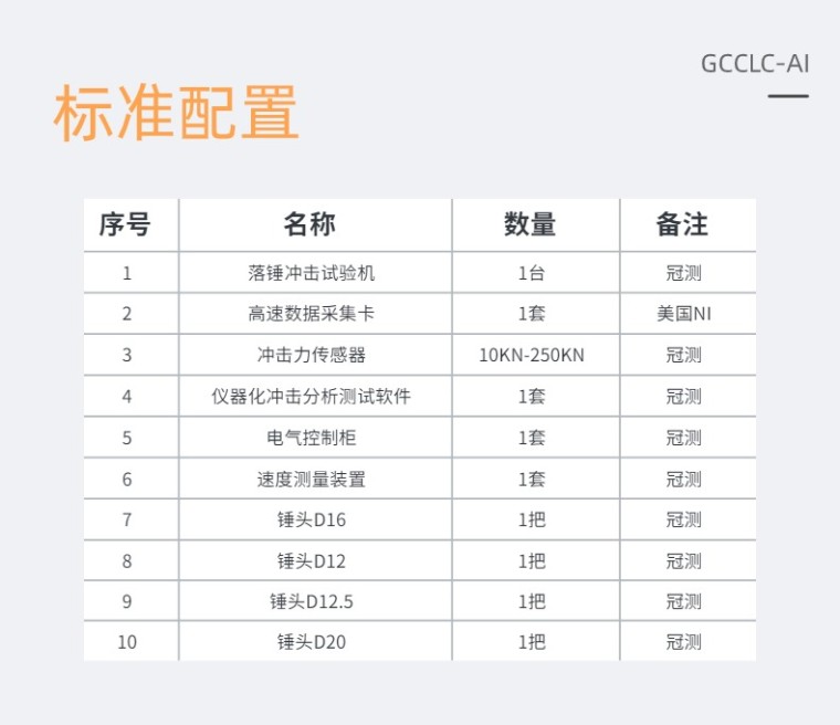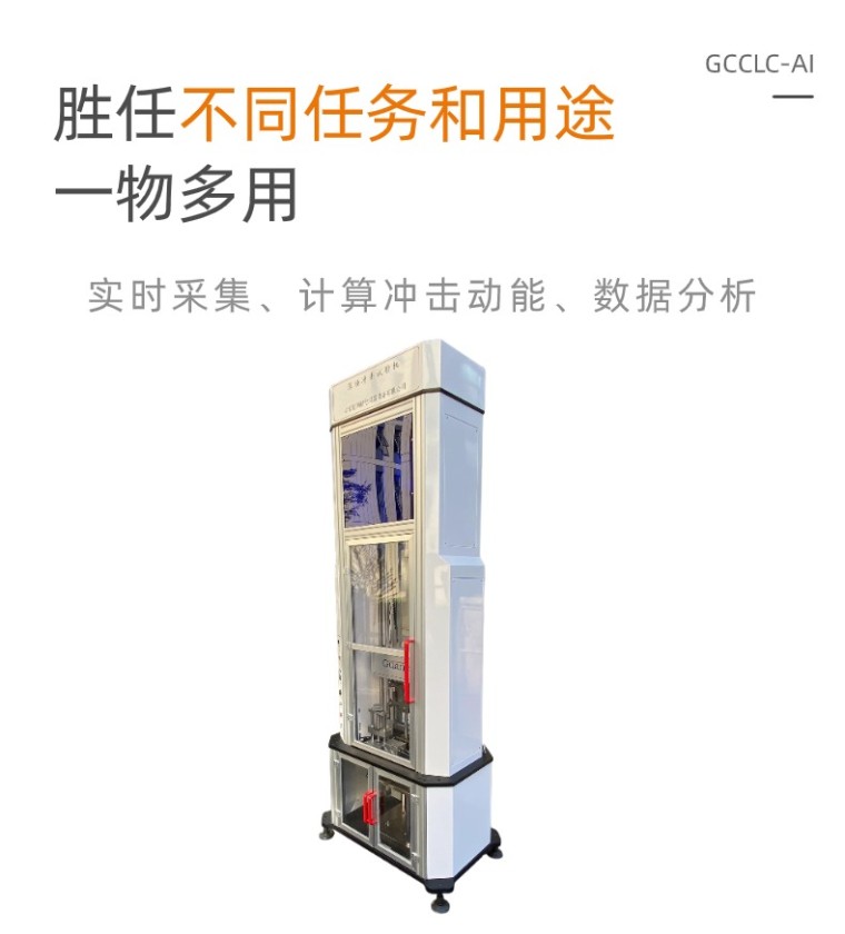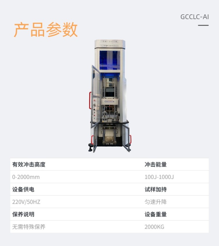 仪器化复合材料落锤冲击试验机 GCCLC-AI 仪器概述:本试验机主要测试材料的抗冲击能力,即通过一定质量的锤头在一定的高度自由下落对试样进行冲击,通过高速率同步采集锤头对试样冲击接触后的数据,分析试样的抗冲击能力及试样的损坏和断裂状态。 我公司生产的复合材料落锤冲击试验机,采用传感器测控技术,能够实时采集落锤冲击板过程中的速度随时间变化曲线,利用瞬时冲击速度和反弹速度计算冲击动能和材料损伤时吸收的能量,通过软件数据分析,得到冲击载荷和和冲击点位移随时间变化曲线。 本复合材料落锤冲击试验机可以通过软件进行数据分析:冲击力、冲击能量、冲击速度、材料吸收能量及损伤耗散能量、损伤临界点及韧脆转变点……. 仪器优势说明 1、水平校准:主机可以水平调整,保证落锤的垂直度 2、数据有效:同时安装有冲击力传感器和加速度传感器,动态显示双趋势冲击图,对测试数据进行有效对比,便于对测试数据的有效性,进行判定 3、三维图形:能够对冲击点进行三维立体梯形模拟展示,更形象和直观 4、冲击形变:能够对锤头冲击试样过程中,对试样的冲击形变,进行模拟影像回放,并可以计算出形变量数值 5、冲击速度:冠测自主开发的采集冲击速度光栅,响应时间0.5μs(市场上现有产品,响应时间无法满足测试需求) 6、数据采集:数据采集卡直接采集传感器的mv电压信号,采集速度更快,精度更高(如经过放大器后采集,会有延时,信号会失真) 7、核心部件:高速数据采集卡,美国NI,保证数据的稳定性和可靠性 8、冲击方式:可按冲击能量、冲击高度、冲击速度三种方式可选 技术指标: 01 有效冲击高度 0-2000mm 可选 02 冲击能量 100J-1000J 可选 03 冲击速度 0-10m/S 可选 04 锤头定位精度 ±1mm 05 冲击力值传感器载荷范围 10KN-250KN 选配 06 实验动态误差 <2% 07 试验区空间 600mm×550mm×450mm 08 砝码质量规格 1.0kg、2kg 、5kg、10 kg 09 冲击锤头直径 D16、D12、D12.5、D20(±0.1mm) 10 锤体及砝码质量偏差 ≤±0.5% 11 锤头硬度 HRC60 ~ 65 12 试样加持 气动加持 13 夹具开孔尺寸 75X75mm、75X125mm、∅75mm 14 锤头夹持 气动 15 防二次冲击 防止对试样进行二次冲击 16 升降速度 匀速升降 17 锤头零点 自动归零 18 冲击方式 冲击能量、冲击高度、冲击速度三种方式可选 19 数据导出 可导出和保存电子数据 20 数据成像 可生成二维/三维图像 21 数据分析 可对多种曲线进行数据分析 22 温度范围 -40℃--+150℃ 选配 23 设备供电 220V/50HZ 24 设备高度 3600mm 25 设备重量 2000KG |