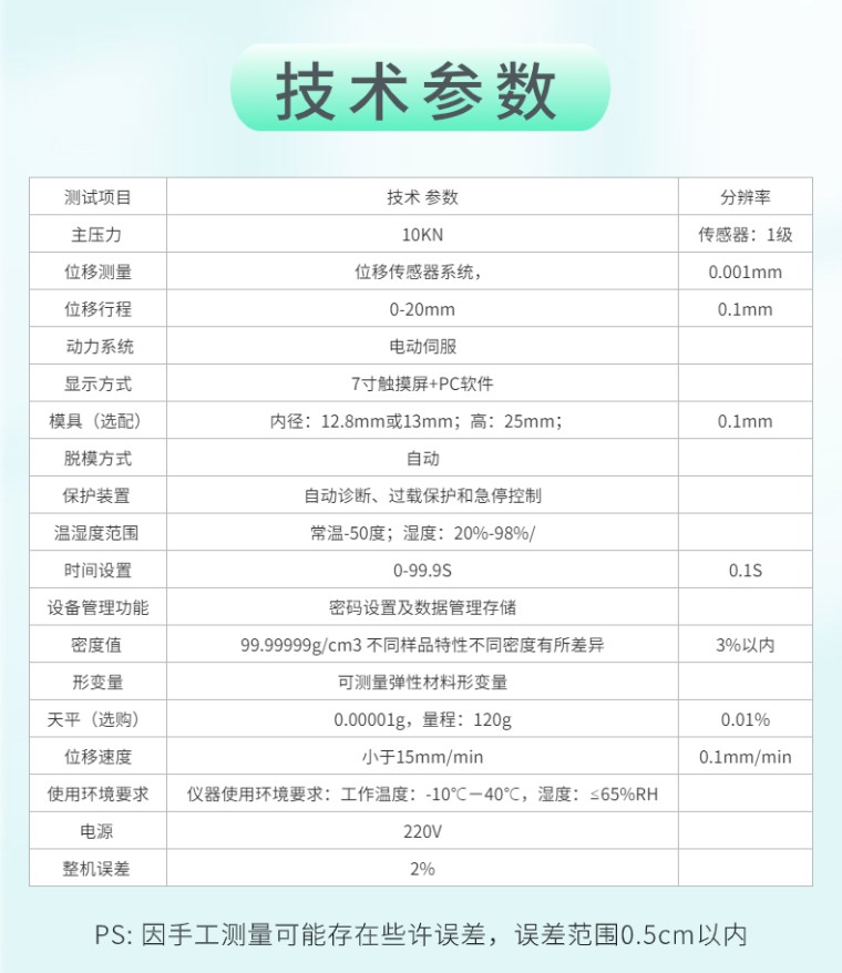 FTYS -10KN粉末自动压实密度仪 测试标准: GBT 24533-2009 锂离子电池石墨类负极材料-粉末压实密度的测试方法 设备用途: 本仪器适用于用粉末压实密度仪测试试样的压实密度 在外力的压缩过程中,随着粉末的移动和变形,较大的孔隙被填充,颗粒间接触面积增大,使原子间产生吸引力且颗粒间的机械契合作用增强,从而形成具有一定密度和强度的压坯。 压实密度的计算公式:压实密度=面密度/材料的厚度 在锂离子电池设计过程中,压实密度=面密度/(极片碾压后的厚度—集流体厚度) ,单位:g/cm3 压实密度分为:负极压实密度Anode density(或称为阳极压实密度)和正极压实密度Cathode density(或称为阴极压实密度)。 工作原理: 锂离子动力电池在制作过程中,压实密度对电池性能有较大的影响,压实密度与片比容量,效率,内阻,以及电池循环性能有密切的关系。 压实密度越大,电池的容量就能做的越高,所以压实密度也被看做材料能量密度的参考指标 功能描述: 采用液压测量系统,7寸触摸屏和PC软件控制,荷重单元控制系统采集应力变化数据,可以设置压力、时间数据,位移由位移传感器直读,温湿度数据通过传感器获得,多位数的AD芯片数据的分析,自动模式,手动操作模式并存;标配PC软件可以获得应力与粉体密度关系曲线;时间与粉体屈服强度关系;过程数据的分析和曲线图谱,为生产企业和科研院所研发和改善工艺建立数据模型.提供中英文两种语言版本。 |