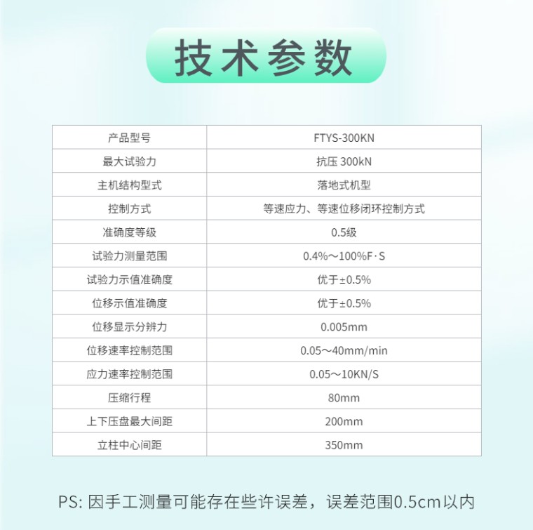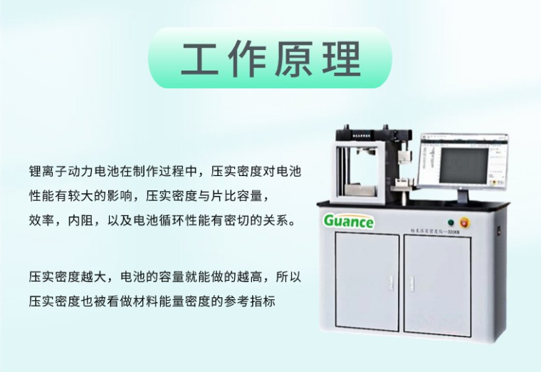 粉末压实密度仪 FTYS-300KN 测试标准: GBT 24533-2009 锂离子电池石墨类负极材料-粉末压实密度的测试方法 设备用途: 本仪器适用于用粉末压实密度仪测试试样的压实密度 产品概述: 在外力的压缩过程中,随着粉末的移动和变形,较大的孔隙被填充,颗粒间接触面积增大, 使原子间产生吸引力且颗粒间的机械契合作用增强,从而形成具有一定密度和强度的压坯。 压实密度的计算公式:压实密度=面密度/材料的厚度 在锂离子电池设计过程中,压实密度=面密度/(极片碾压后的厚度—集流体厚度) ,单 位:g/cm3 压实密度分为:负极压实密度 Anode density(或称为阳极压实密度)和正极压实密度 Cathode density(或称为阴极压实密度)。 工作原理: 锂离子动力电池在制作过程中,压实密度对电池性能有较大的影响,压实密度与片比容量, 效率,内阻,以及电池循环性能有密切的关系。 压实密度越大,电池的容量就能做的越高,所以压实密度也被看做材料能量密度的参考指标 产品描述 u 该试验机采用高性能交流伺服电机来驱动精密丝杠运行,高性能控制系统可实现等速率 应力、等速率位移、等速变形等多种模式的自动控制和任意编程控制; u 试验机主机采用下置式主机,装夹试样快捷。整机全钢打制强度高,耐疲劳度好; u 由于是交流伺服电机加载无过热现象出现,因此可以满足 7×24小时的工作要求**保 护装置: |