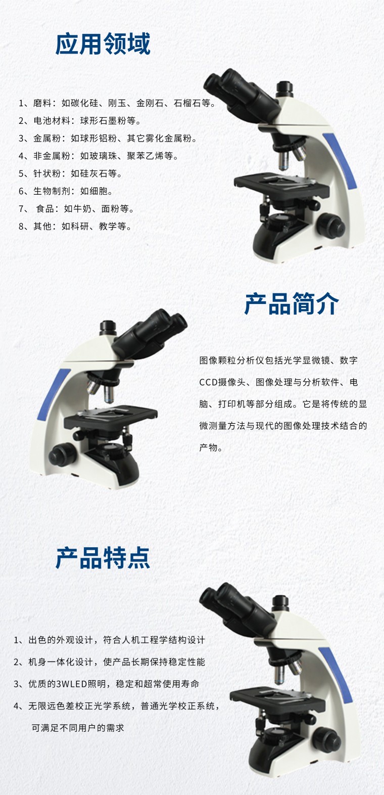 ZKFT-1600图像颗粒分析仪 一、产品简介 ZKFT-1600图像颗粒分析仪包括光学显微镜、数字CCD摄像头、图像处理与分析软件、电脑、打印机等部分组成。它是将传统的显微测量方法与现代的图像处理技术结合的产物。它的基本工作流程是通过专用数字摄像机将显微镜的图像拍摄下来并传输到电脑中,通过专门的颗粒图像分析软件对颗粒图像进行处理与分析,从而得到每一个颗粒的粒度和粒形信息,再将每一个颗粒的粒度和粒形信息进行统计,从而得到粒度(D50)及粒度分布、平均长径比及长径比分布、平均圆形度及圆形度分布等结果。 ZKFT-1600直观、形象、准确特点,它是将微米级以上的颗粒放大几十、数百乃至上千倍,将整个颗粒形状显示在人们的眼前,使人一目了然。它不仅能看到颗粒,还能通过“尺子”来量每一个颗粒的大小,并通过图像处理技术得到所有颗粒的直径,进而得到粒度分布、平均长径比以及长径比分布等。ZKFT-1600为粉体材料的科研、生产和应用领域增添了一种直观、简便、准确的粒度粒形测试手段。 ZKFT-1600静态图像颗粒分析仪还具有很多独特图像处理功能,包括自动拍摄、自动分割、自动填充、批处理多幅图像、准确性标定等。其中众多的“自动”功能简化了操作,提高了效率;批处理多幅图像功能,彻底克服了传统的静态图像颗粒分析仪仅能分析单幅图像,导致颗粒数太少,代表性不足,结果不准确的问题。它可以拍摄很多幅图像,对这些图像一幅一幅地处理,每一幅处理过的图像上的颗粒都汇集到一起,提高了代表性。 二、产品特点: *出色的外观设计,符合人机工程学的结构设计 *机身一体化的设计,使产品长期保持优异稳定性能 *上等的3WLED照明,稳定和超常使用寿命 *无限远色差校正光学系统,普通光学校正系统,可满足不同用户的需求 三、主要应用领域:(观察粒形、分析粒度、监测大颗粒) • 磨料:如碳化硅、刚玉、金刚石、石榴石等。 • 电池材料:球形石墨粉等。 • 金属粉:如球形铝粉、铅锡合金粉、其它雾化金属粉。 • 非金属粉:如玻璃珠、聚苯乙烯等。 • 针状粉:如硅灰石等。 • 生物制剂:如细胞。 • 食品:如牛奶、面粉等。 • 其他:如科研、教学等。 四、测试原理 • 标定方法:用显微镜专用标准刻度尺直接标定每个像素的尺寸,再根据每个颗粒图像面积所占的像素多少来度量颗粒的大小,以微米为单位。 • 测试原理:通过对颗粒数量和每个颗粒所包含的像素数量的统计,计算出每个颗粒的等圆面积和等球体积,从而得到颗粒的等圆面积直径、等球体积直径以及长径比等。为计算方便,ZKFT-1600图像颗粒分析仪是以100个像素为一个计量单位的。 |