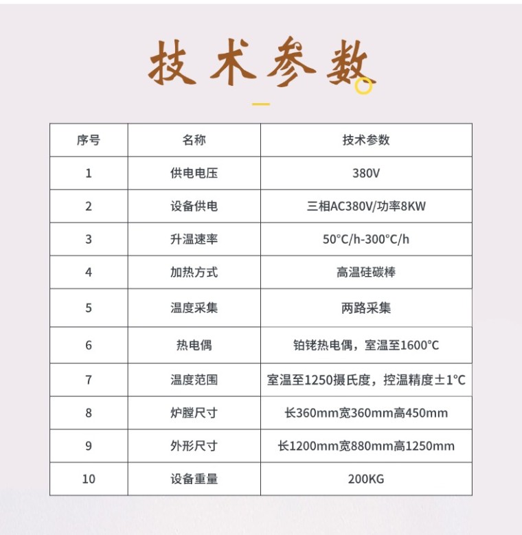 高温焙烧炉 GCGWL-1200 参考标准:YB/T 5054-2015 炭糊类检测试样制备方法 产品用途: 本设备适用于炭糊类检测试样的制备 产品概述: 本高温炉通过触摸屏操作控制,可以实现单程序段和多程序段升温控制,升温速率可设定,可做恒温保持试验。通过两路温度采集,可以实现试样内部温度监控及炉膛温度的保护。炉膛采用耐高温且重量轻的陶瓷纤维材质。 核心技术参数: 1、控制方式:触摸屏+多程序段控制 2、温度采集:两路采集,一路采集试样温度,一路采集炉膛温度 3、热电偶:铂铑热电偶,室温至1600℃,长度750mm 4、升温速率:50℃/h-300℃/h 5、温度范围:室温至1250摄氏度,控温精度±1℃, (1200℃可长期使用) 6、加热方式:高温硅碳棒 7、炉膛尺寸:长360mm宽360mm高450mm 9、外形尺寸:长1200mm宽880mm高1250mm 10、外壳温度:工作状态下外壳*高温度60℃ 11、供电电压:380V 12、设备供电:三相AC380V/功率8KW 13、设备重量:200KG 配套附件: 1.铁坩埚 尺寸:外径210mm,内径200mm,壁厚5mm,高度305mm 数量:1个 2.试样铁桶: 材质:光滑铁皮 尺寸:直径55mm*400mm/直径80mm*400mm,壁厚0.3mm-0.5mm 数量:20个 |